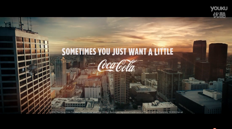 第三个广告是可口可乐公司在2016年超级碗上的广告,叫《绿巨人大战蚁人》。