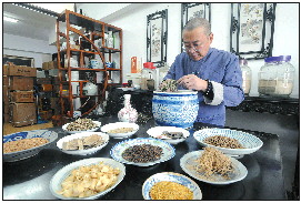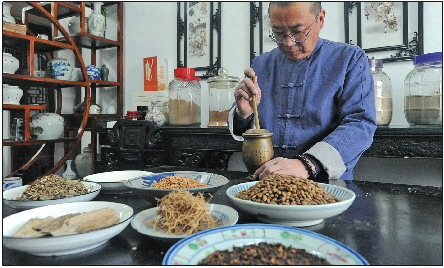 王昱介绍,当代鼻烟分烟草型与非烟草型两种,他家世代传承的就是非烟草型鼻烟,到他这已是第六代了。小时候,看爷爷碾磨原料、制作鼻烟,王昱感到好玩,于是在玩乐中埋下了鼻烟的种子。