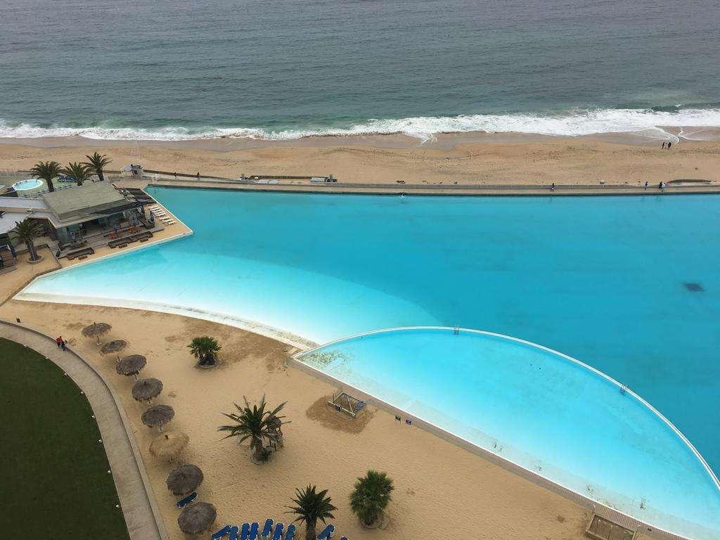 圣阿方索渡假村San Alfonso del Mar,拥有吉尼斯世界纪录认证的世界最大游泳池。泳池长达1公里,占地约8公顷,相当于22个奥林匹克比赛泳池的大小,最大深度为35米。