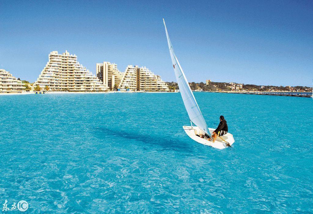 这个巨大的泳池位于海滨城市阿尔加罗沃,紧邻太平洋沿岸,因此填充泳池的25万公升水都是取自太平洋的海水,经过电脑自动处理过滤后注入泳池。这么大的泳池,玩法当然也不常规,你甚至可以在这里享受帆船航行,进行浮潜、快艇等水上活动。
