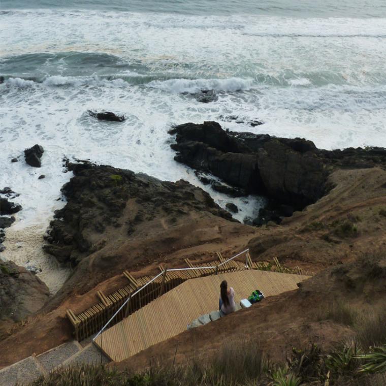 塔尔卡,地处中央谷地马乌莱河支流克拉罗河畔。这个小镇有一处观景平台,沿着当地居民通常走过的路线修建。整个平台被分为两部分,较低的平台嵌在陡坡中,在广阔的景观中强调了海浪孤独的听觉感受。高处的过道通往一个开放平台,参观者可以在宽阔的平台上观赏到毫无遮挡的海岸景色。