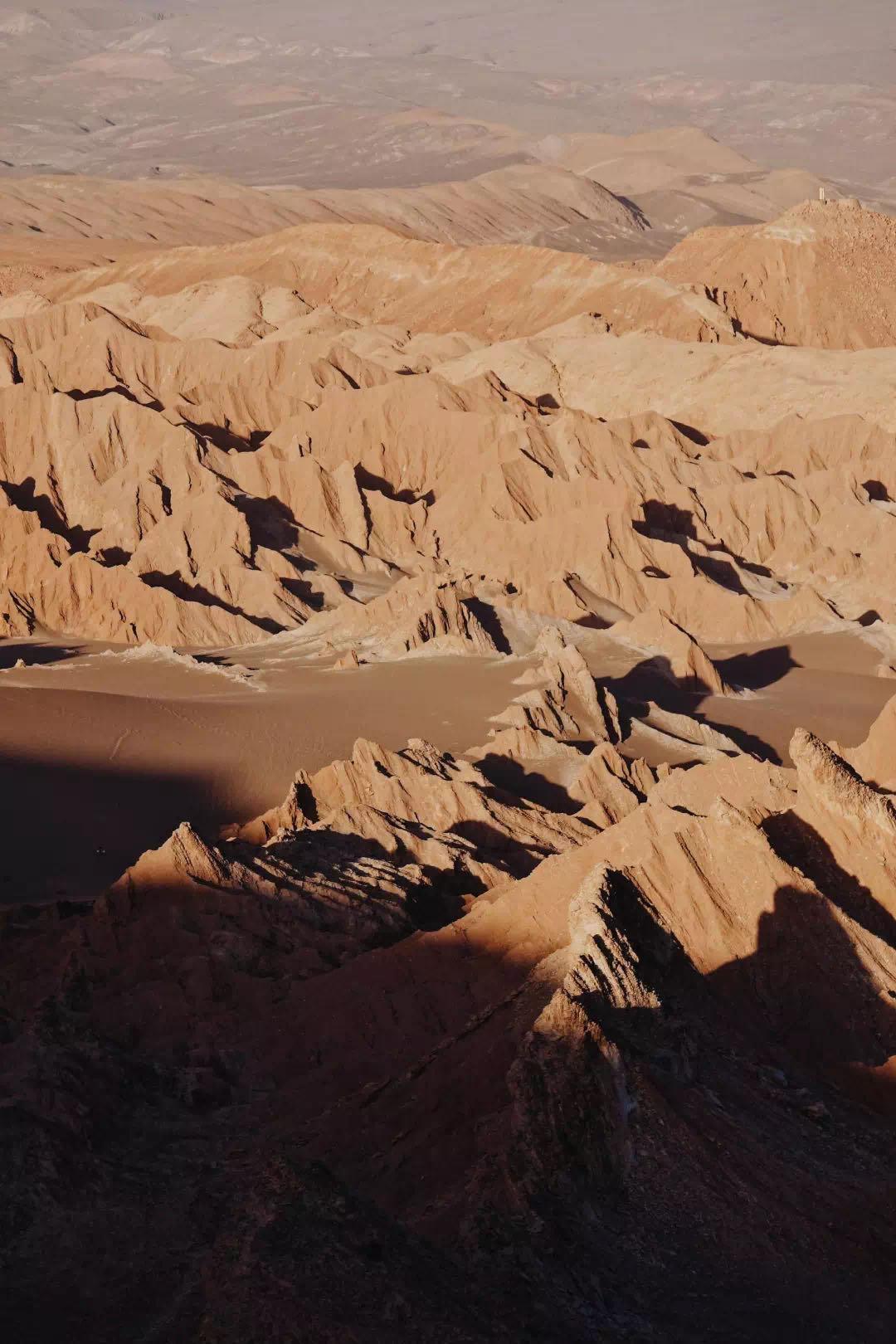 整片地区都属于阿塔卡马沙漠,这一带有许多形态各异的山谷形地貌,被喻为地球表面最接近火星的地方,不少游客慕名前来寻找“外星景观"。月亮谷又名死亡谷,是观日落的绝佳场所。放眼望去,全是由盐渗透、侵蚀以及风化后形成的天然雕塑。