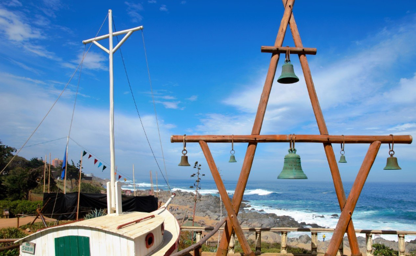 黑岛则是聂鲁达故居中最为著名的一处,位于距圣地亚哥约150公里的圣安东尼奥港附近。1937年从动荡的欧洲回到智利,聂鲁达想要寻找一处安静的居所创作《漫歌》,便从一位海军上校手里买下了这幢面朝太平洋的石屋,并不断改造,直至它变为一栋船型别墅。