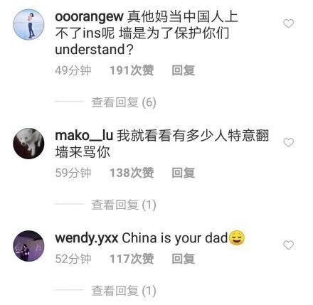 如此粗劣的借口自然没人相信,中国的网友们早就杀到他的账号下“攻城略地”了: