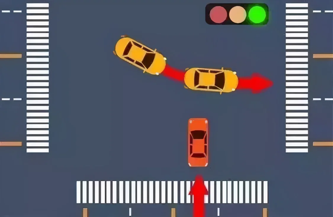 ✦ 绿灯时,直行车辆没有让行上一个红绿灯期间内,就遗留在路口中间行驶过来的左转弯车辆。