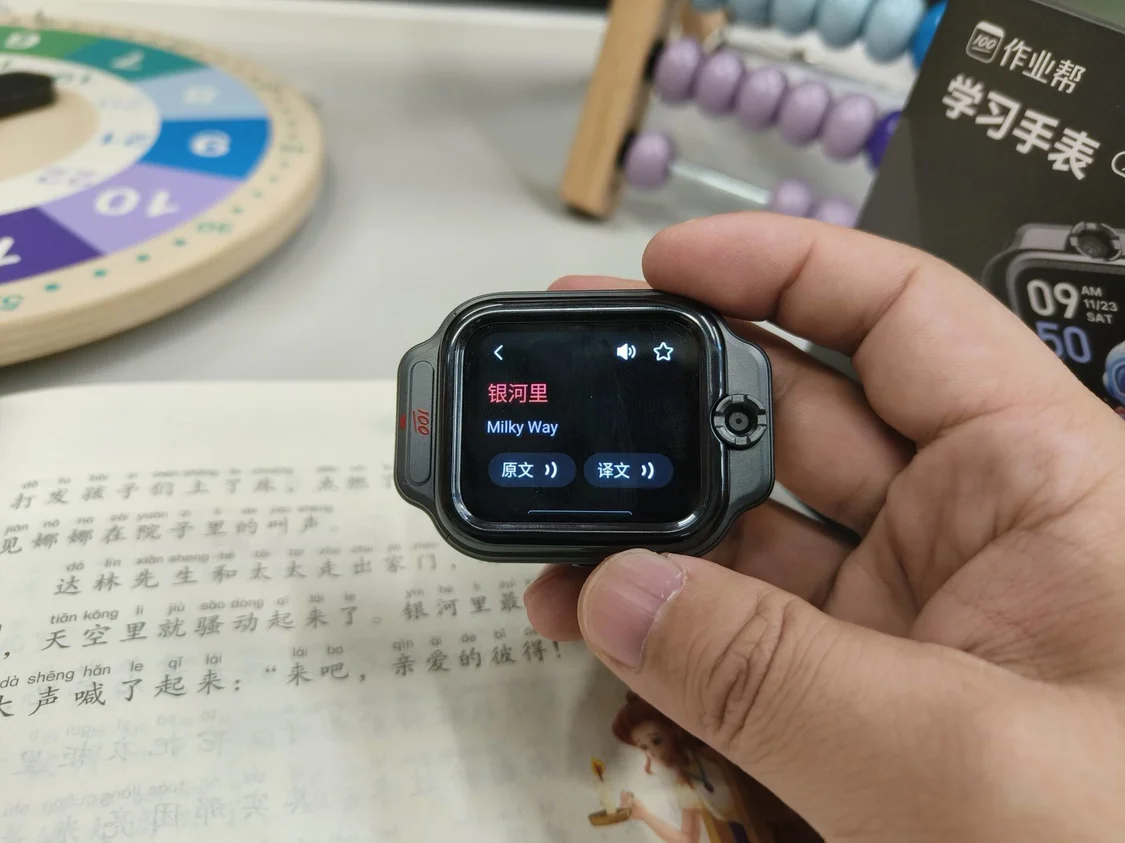作业帮学习手表X9的系统是基于作业帮“聪明学”智能系统打造,拥有教育+科技双引擎驱动,拥有700w+海量词库小学到大学全覆盖的词典,能够做到又快有准,除了拥有实时翻译功能,作业帮学习手表X9对于学习英语犯难的小朋友来说,绝对是个大大的福音。