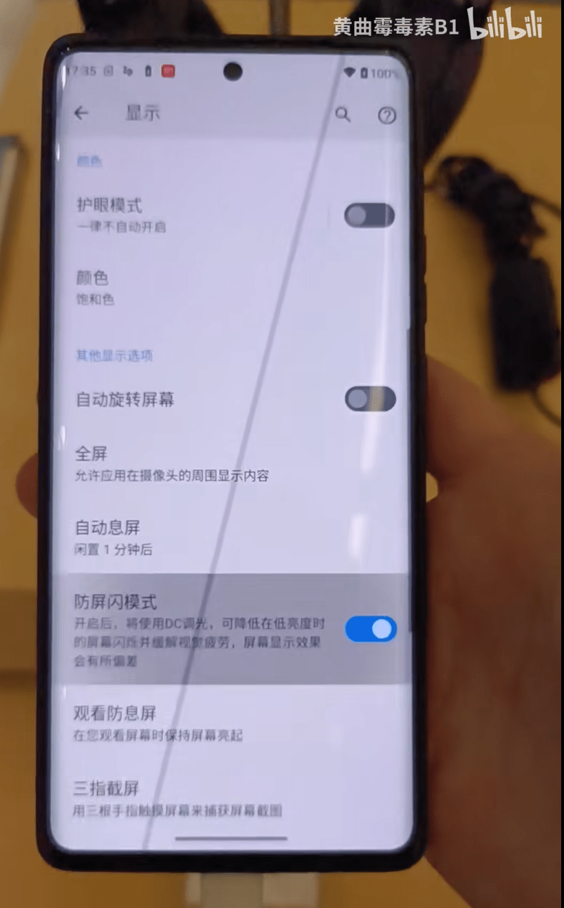 顺带跟大家普及下,moto它家还是非常热衷保修类DC软件功能的,在对待用户“护眼性要求”确实很重视,实际频闪表现也可以参考下moto X40自家旗舰手机的表现,“黄曲霉素B1”博主实测可打开“防频闪模式”,高低亮度PWM黑条并没有增加。