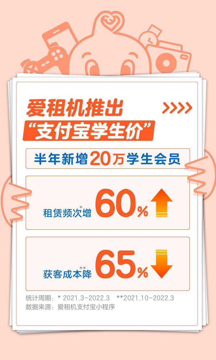 元气租机于2021年10月起在支付宝上推出“学生价”,以信用租赁模式和学生专享的价格优惠,为学生提供3C等商品的租赁服务。学生用户可以先体验、再决定是否需要购买,能更合理、理性地使用资金。无人机、运动相机等时尚潮玩品类,前三天每日1元等模式,则可以让学生以低成本短期租用,替代购买和使用。