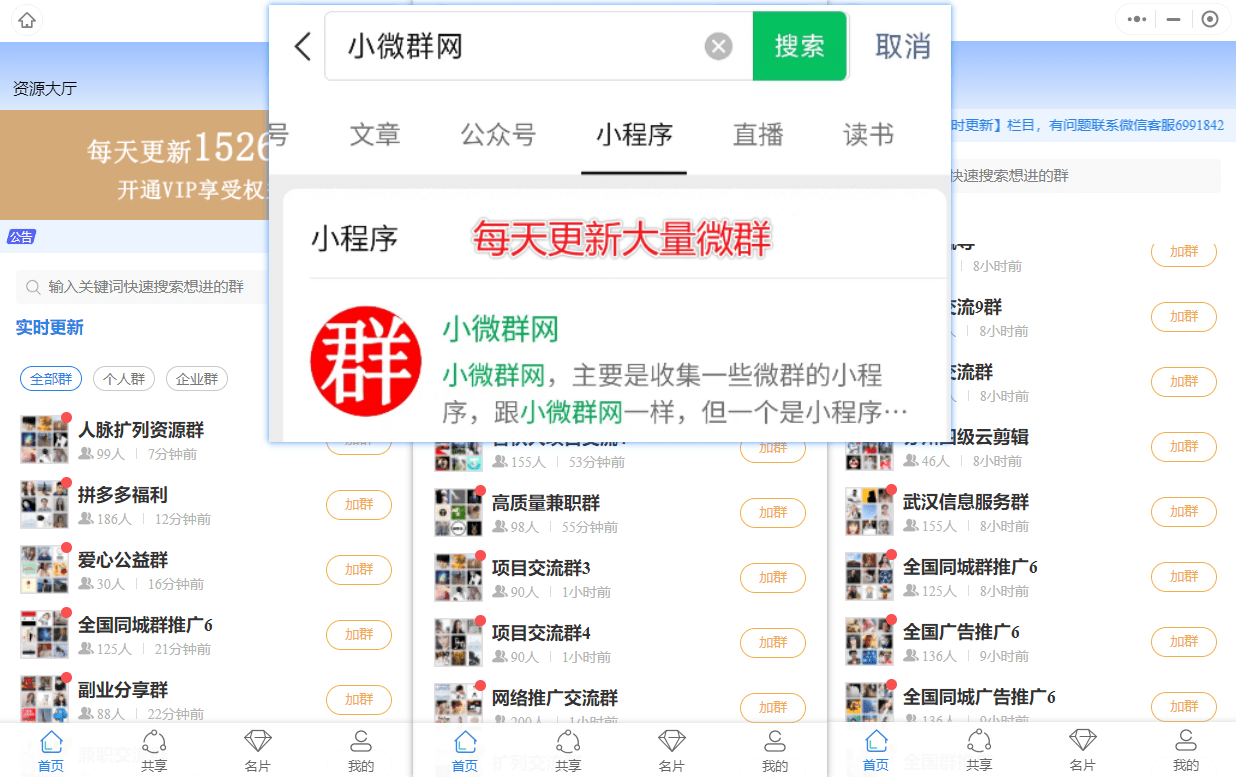这些小程序会定期更新精准的微信群资源,您只需通过关键词搜索,即可找到并加入众多微信群。