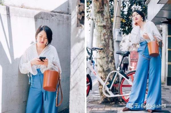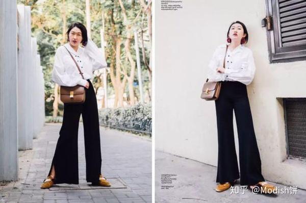 这组奉上的是一波肿成猪的蓝白配,blouse+阔腿裤的大女人视觉感。