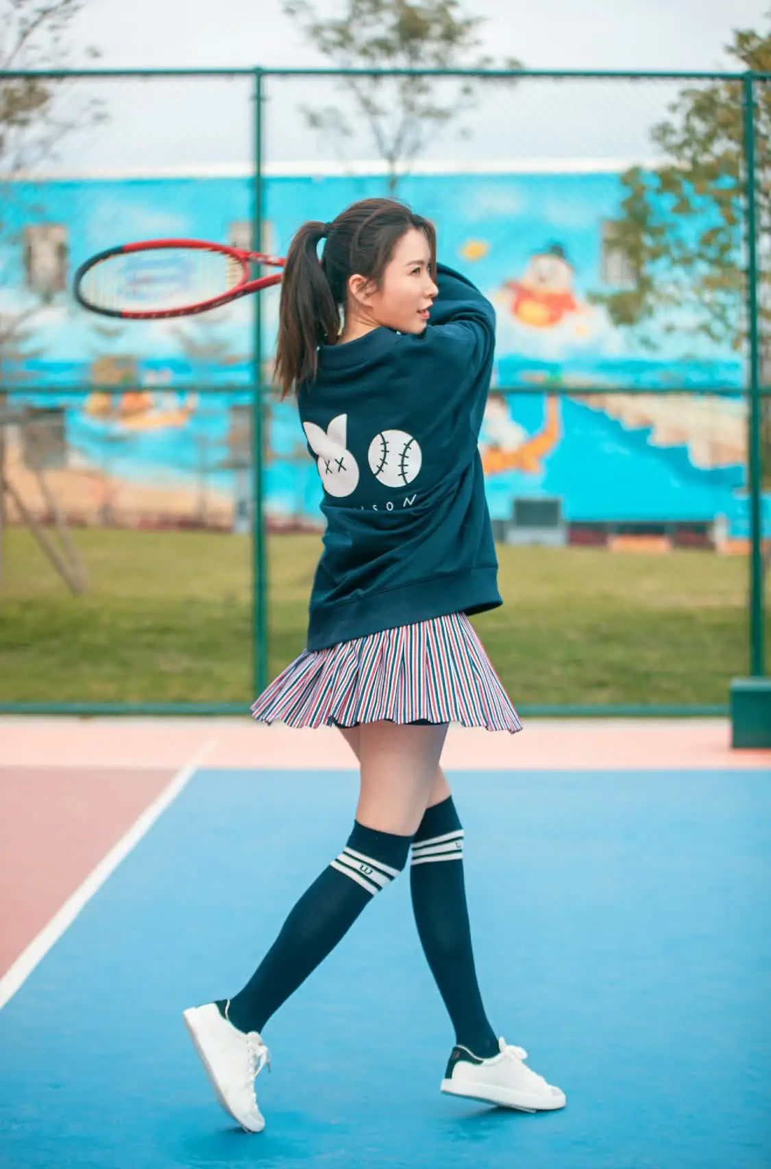 日前,徐洁儿在社交平台晒出一组网球运动美图,并配文表示自己化身Tennis girl,“来身兔年网球ootd,新的一年继续动如脱兔、活力健康!”,引发粉丝强烈关注。照片中徐洁儿高马尾发型元气满满,身穿深蓝色运动卫衣搭配条纹短裙,纤细美腿令人心动;深蓝色长筒袜与卫衣相得益彰,脚踏白色运动球鞋,再加上徐洁儿招牌的女神微笑,满屏都是青春和活力的气息。