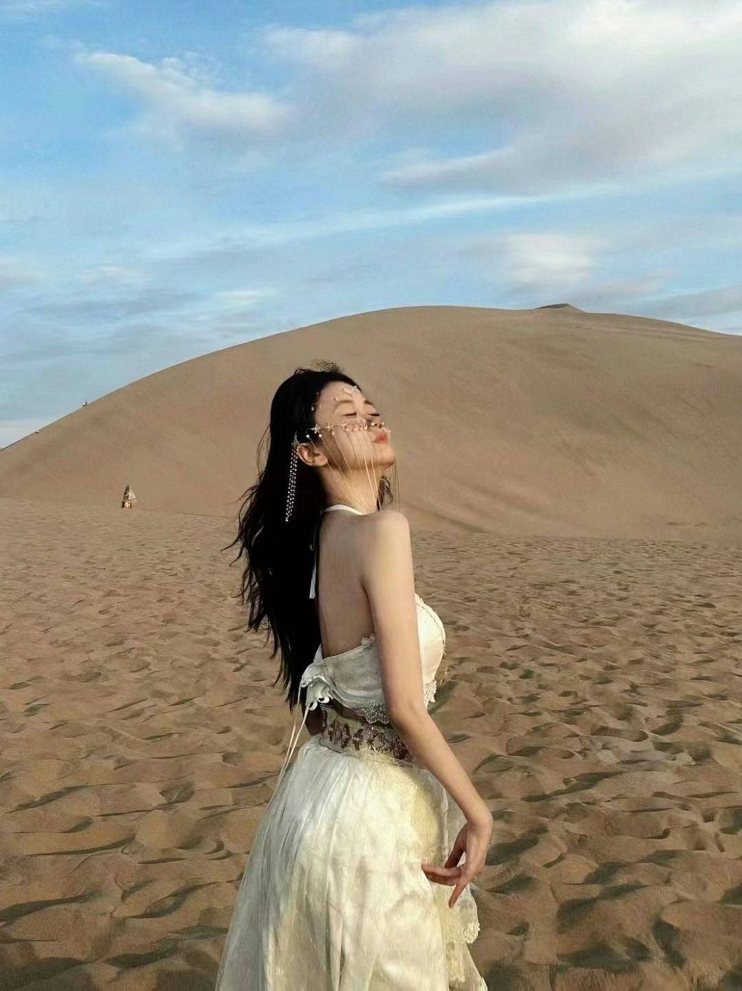 除了莫高窟,我还游览了鸣沙山和月牙泉。鸣沙山的沙丘如黄金般闪耀,每一步都发出令人惊叹的沙鸣声,给人一种奇幻的感觉。而月牙泉则是一片独特的湖泊,宛如一颗明亮的明珠镶嵌在沙漠之中。在那里,我感受到了沙漠中的宁静与神秘,令人心旷神怡。