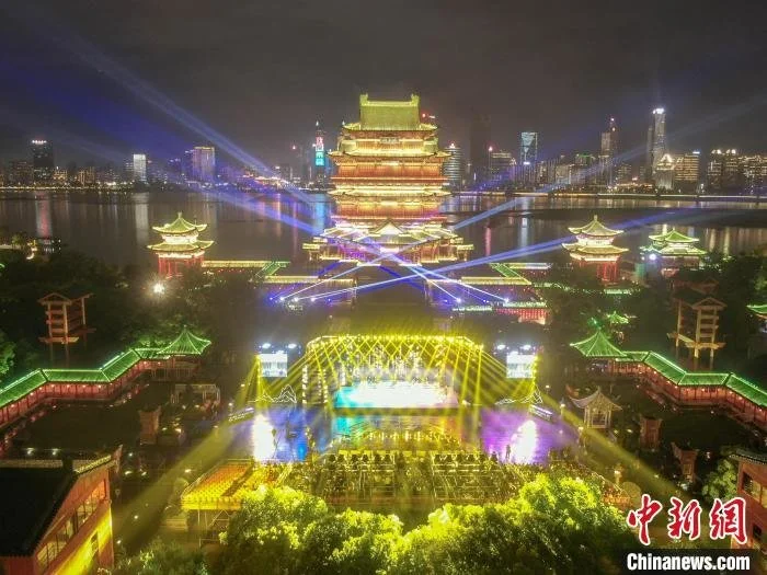 图为航拍吟唱会的《滕阁诗韵》篇章表演现场。 刘力鑫 摄