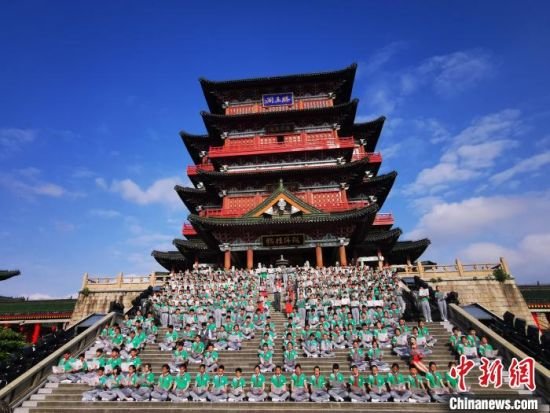 中新网南昌4月21日电 (记者 李韵涵)“豫章故郡,洪都新府。星分翼轸,地接衡庐……”4月21日,在江南三大名楼之一的滕王阁下,伴随着悠扬的伴乐,400余名统一着装的学生和教师齐声诵读经典名篇《滕王阁序》。