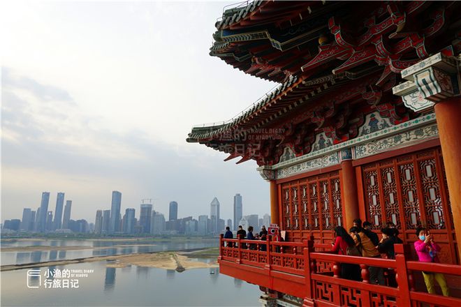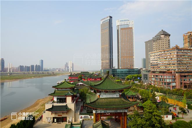 滕王阁坐落在赣江与抚河故道交汇处,赣江东岸的滕王阁是一片古朴的建筑群,而对岸的红谷滩新区则高楼林立,古典与现代仿佛就这样神奇的交织在了一起。