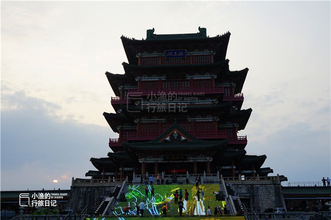 来的当天南昌天气极为闷热,进入景区后,滕王阁的正面台阶处有工人正在铺设灯光电线,是为了晚上灯光秀做准备。但也影响了想要给滕王阁拍一张正面全景的照片。不过很快,当我开始登楼、看展、远眺,那些不快渐渐烟消云散,我也开始进入到了这座古代名楼的往昔岁月。