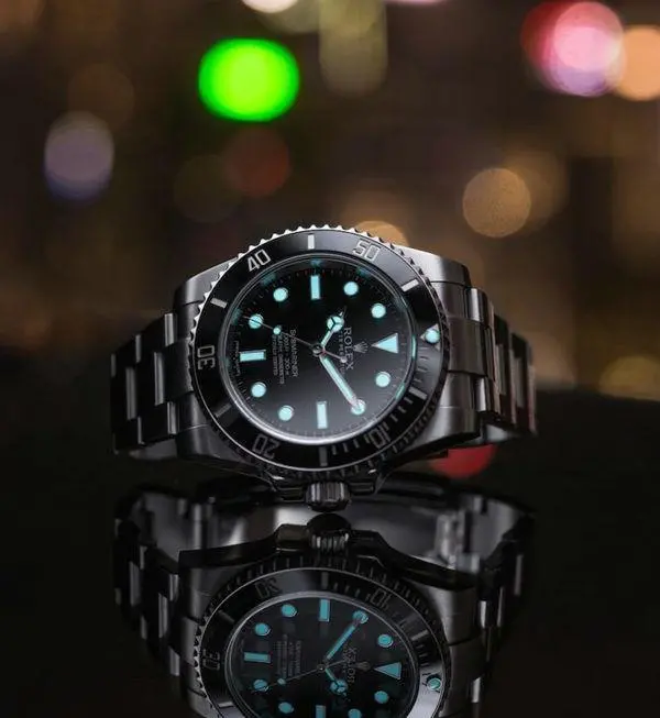 劳力士的夜光幽蓝饱满,非常受表迷欢迎。这种发蓝光的荧光材质是Chromalight,它被用在一系列劳力士专业蚝式表款的指针和钟点上。