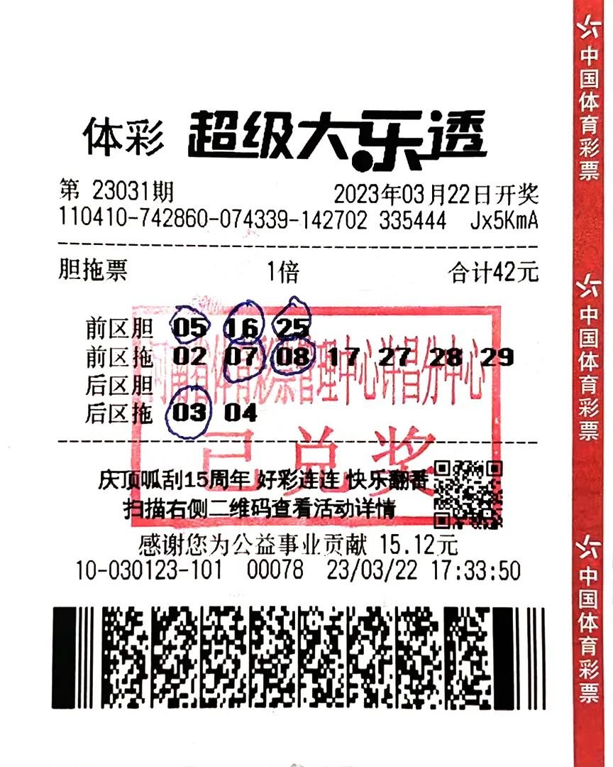 【中奖】幸运号定胆喜中大乐透二等奖(大乐透幸运彩票网)