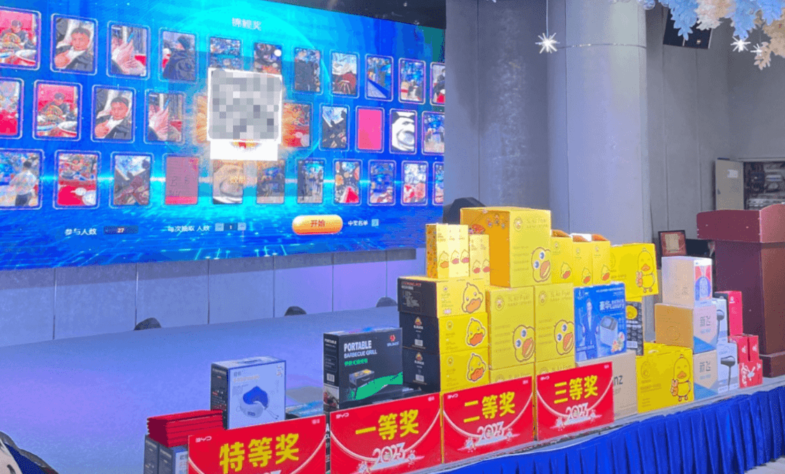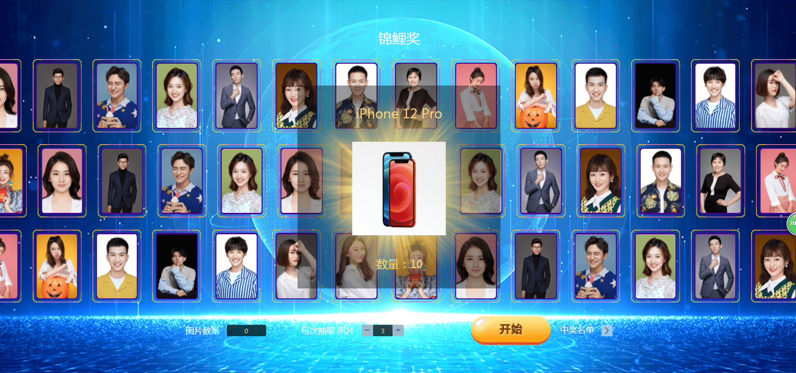 主办方通过大屏幕抽奖页面,随机从本地图片中抽取中奖数据。
