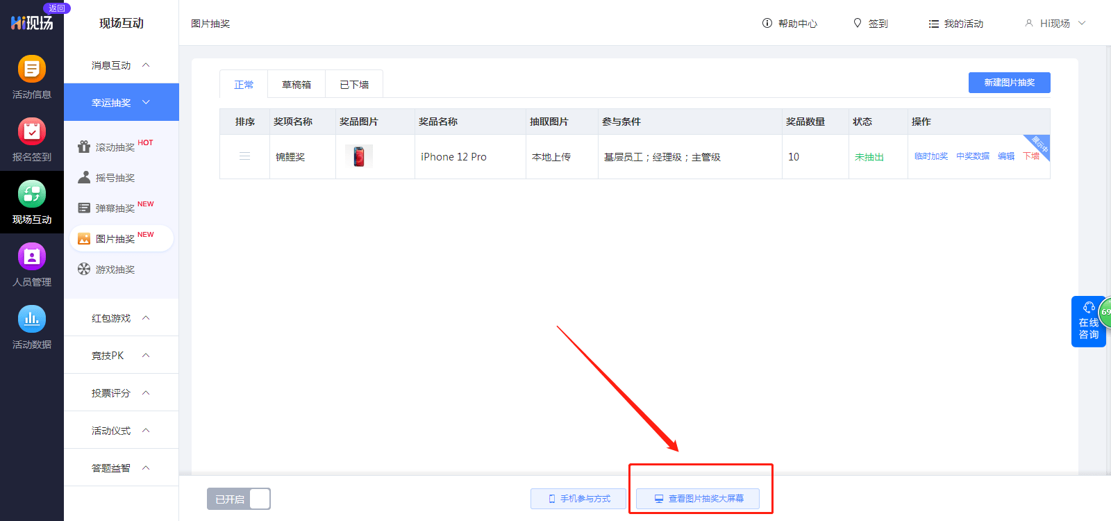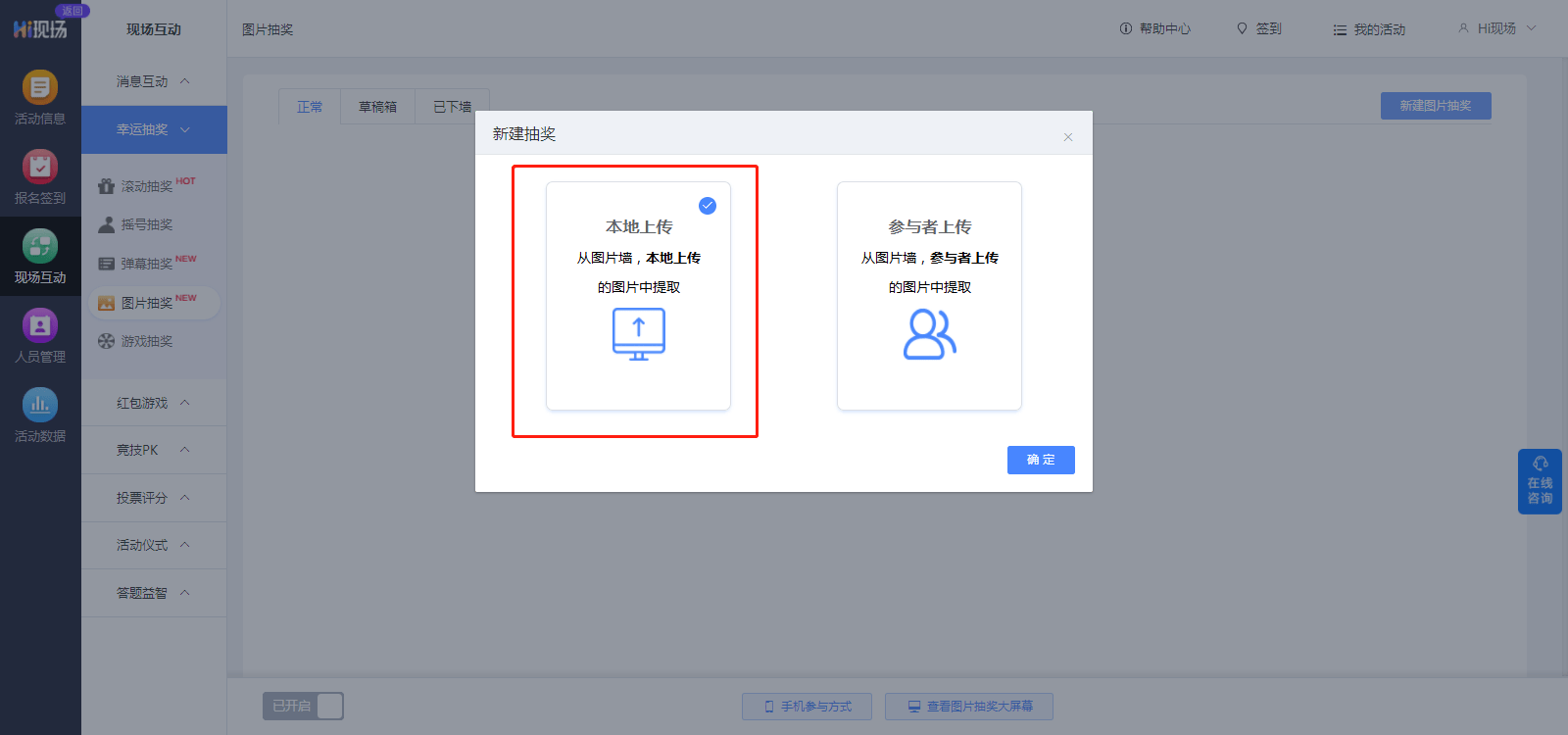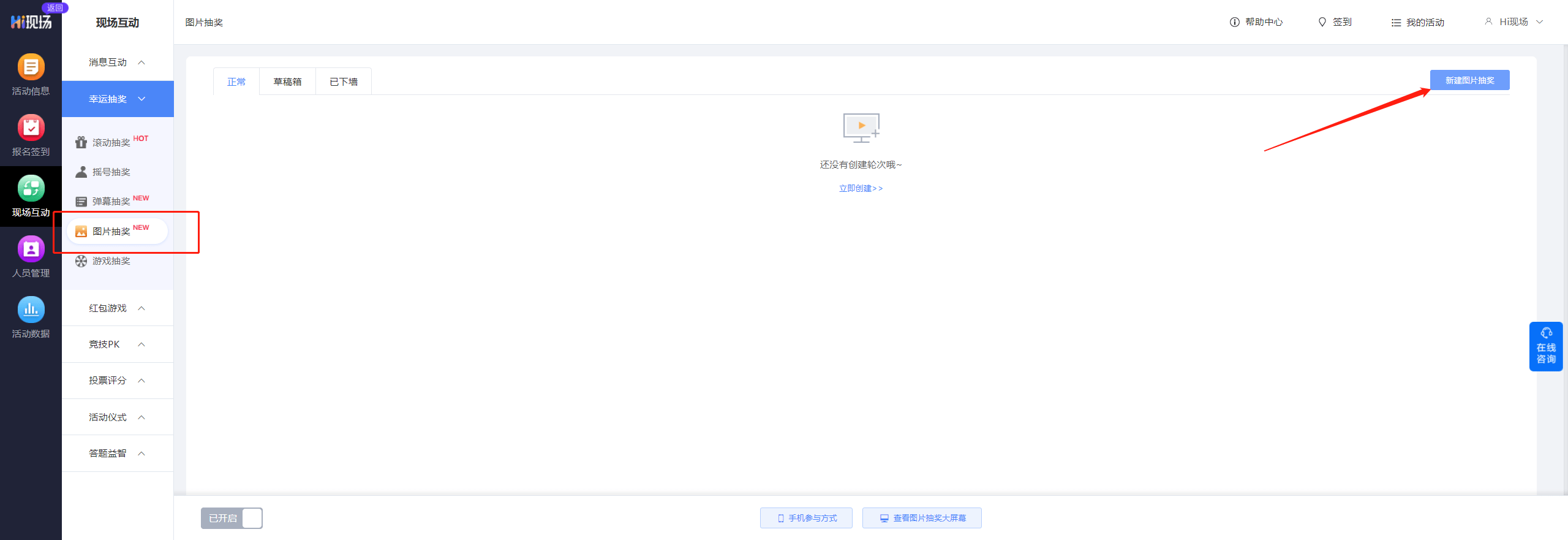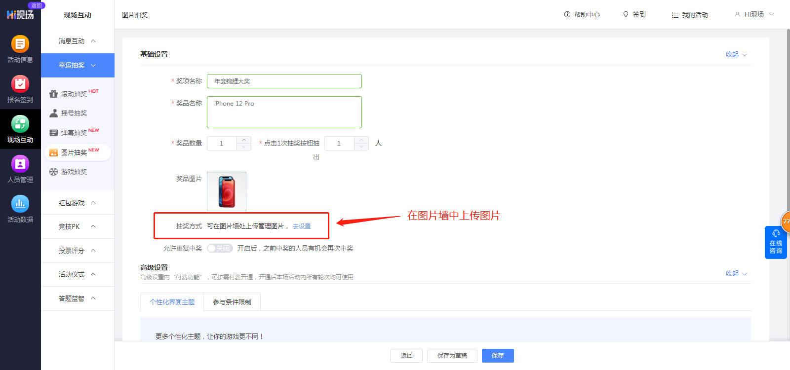 以下是hi现场照片抽奖的创建流程,3分钟轻松搞定: