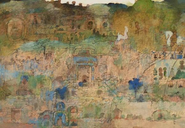 敦煌莫高窟写生平山郁夫丝绸之路系列作品(图©平山郁夫 作)▼