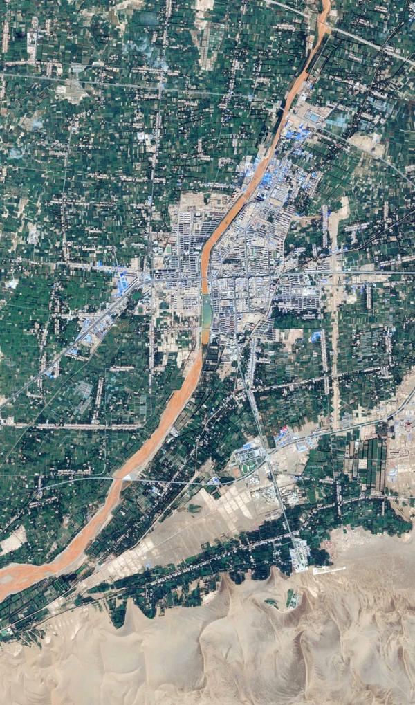 敦煌市区,母亲河党河穿城而过绿洲和沙漠一步之遥(图©谷歌地球)▼
