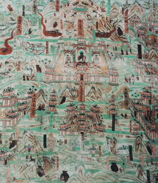 《五台山图》不仅是一张世俗绘画,而且是一张描绘当时山西地区的地图:正是有了这张图的引导,建筑学家梁思成、林徽因在山西北部找到了我们的国宝古建——唐代五台山佛光寺大殿。
