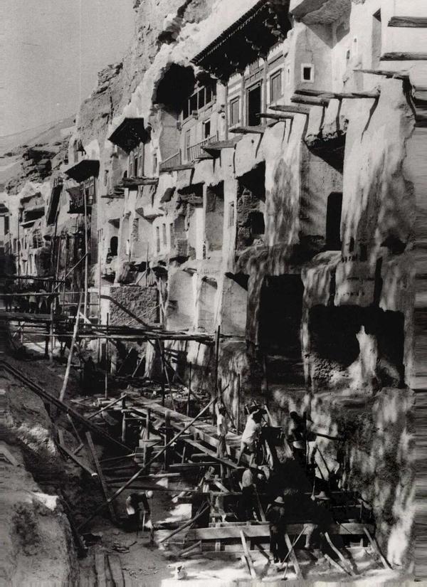 敦煌莫高窟古建筑修复现场(图©敦煌研究院老照片)▼