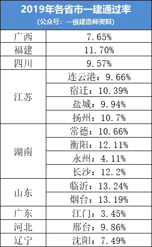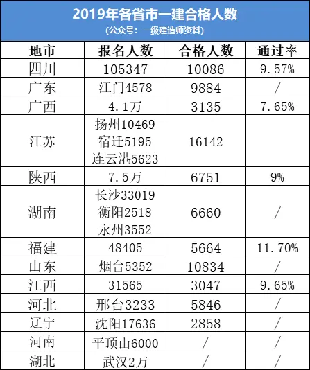 在哪个省考一建最容易?2019一建合格率、参考率,最新统计!(一建在哪个省份好考些)
