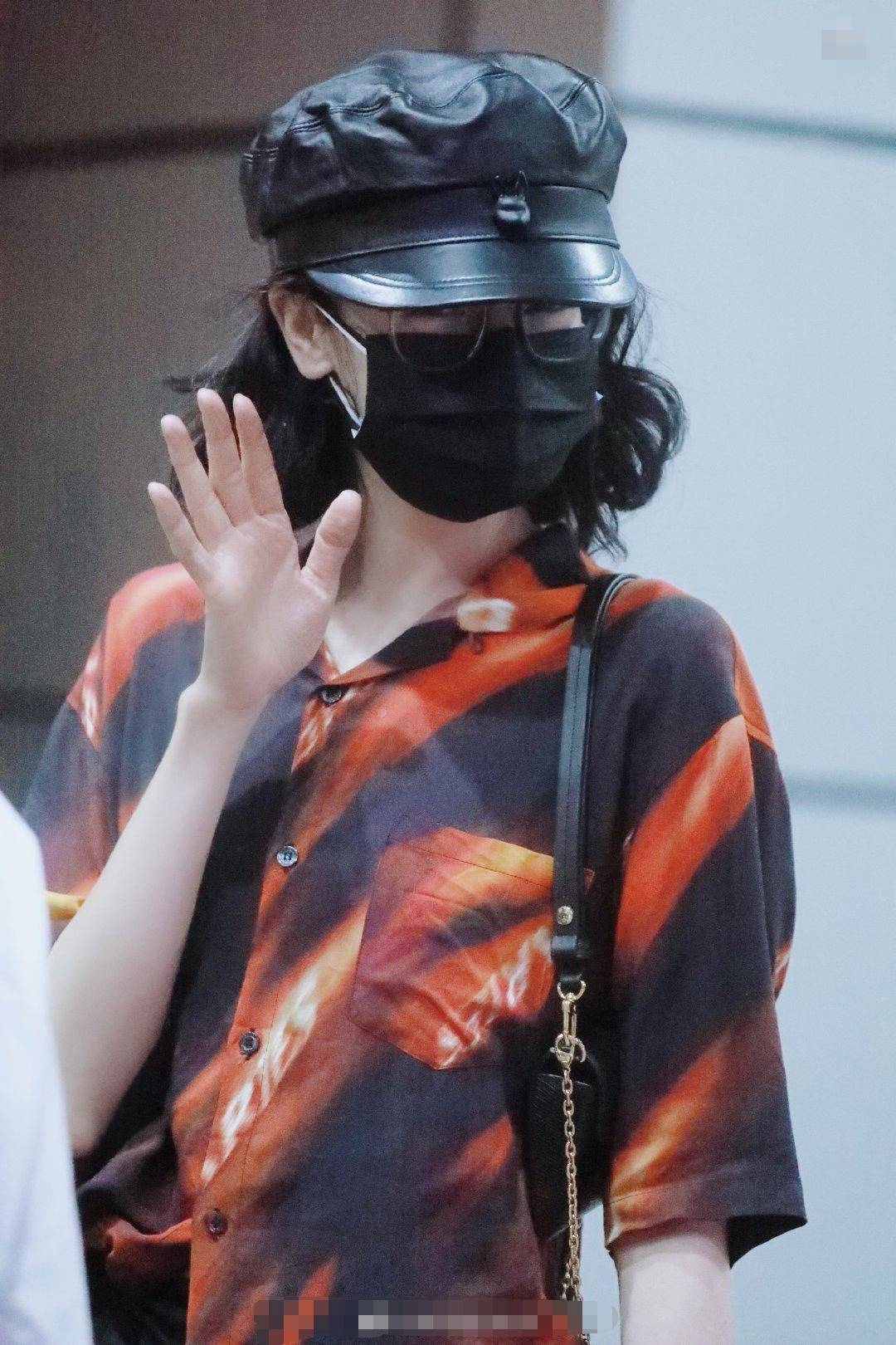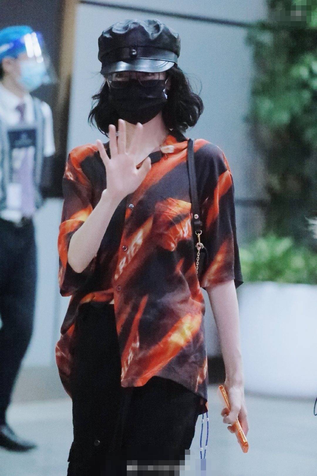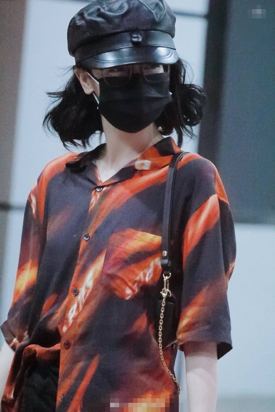 迪丽热巴机场穿搭,穿火焰衬衫配工装裤,网友:妥妥帅气男明星!-迪丽热巴服饰搭配图片