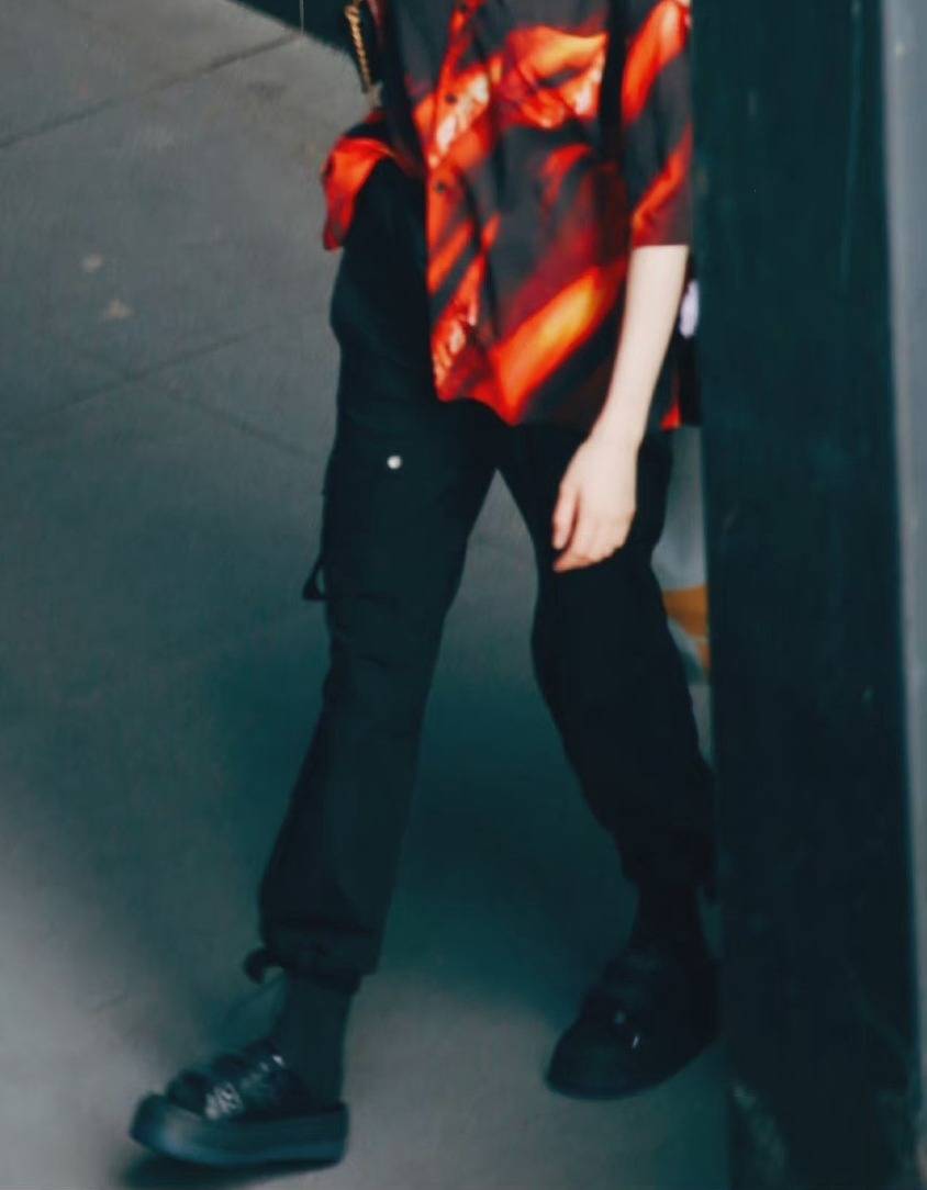 非常时尚又帅气,如果不仔细看脸,甚至会给人一种男明星的既视感!我们先来看看上半身。迪丽热巴上身穿着一件火焰印花衬衫。明亮的橙色和黑色相得益彰,给人一种非常强烈的视觉效果。一般很少有女生会喜欢这种花朵图案的穿法,因为会给人一种过于男性化的感觉,但是如果驾驭这样的风格