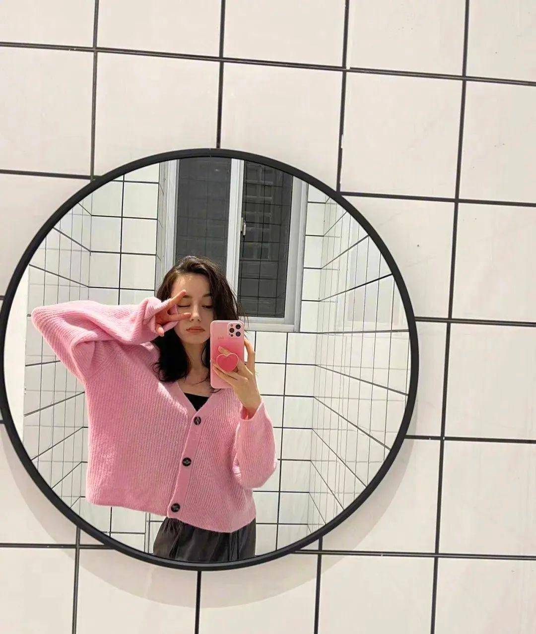 但是经过观察,她的衣橱里有很多开衫。像这样的短款在她的照片中出现过无数次。粉红色对皮肤相当公平。如果你有这样的需求,也可以试试这件粉色的短款开衫,非常好看又很有气质。