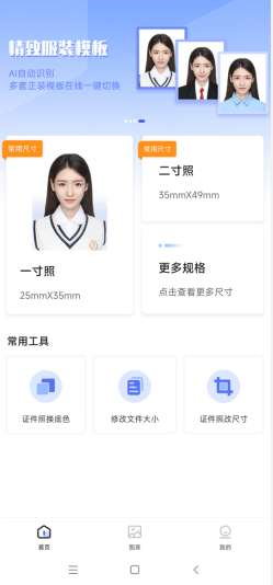 正常大家拍出好看的照片,都希望画质越高越好,尺寸越大越好,但是有这么一类照片却是以小尺寸而出名,那就是证件照,由于证件照一般都是纯色背景,而且不允许有过多的修饰PS痕迹,所以平时好看的大家,到了证件照上那可叫一个五花八门,今天小编就为大家带来一款有着不错模板的证件照制作工具,里面提供了有限的美化功能,无需担心过多PS导致图片不能使用,多种美化服务轻松体验,好看证件照轻松制作,有需要的小伙伴不要错过哦!