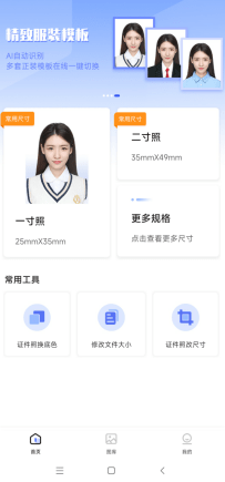 随着网络技术的不断发展,各种证件的申请办理也是越来越方便,很多材料都可以直接通过网络在线上进行提交,不过相对的也对许多凭借习惯行事的用户带来了诸多不便,其中之一就是对于照片尺寸的把握,虽然很多小伙伴都知道一些格式大小的实际尺寸,但如果要换成数字的像素格式,就是两眼一抹黑了。今天小编就为大家带来一款方便的模板化证件照制作工具,诸多证件轻松选择,为用户带来方便的编辑体验,有需要的小伙伴快来看看哦!