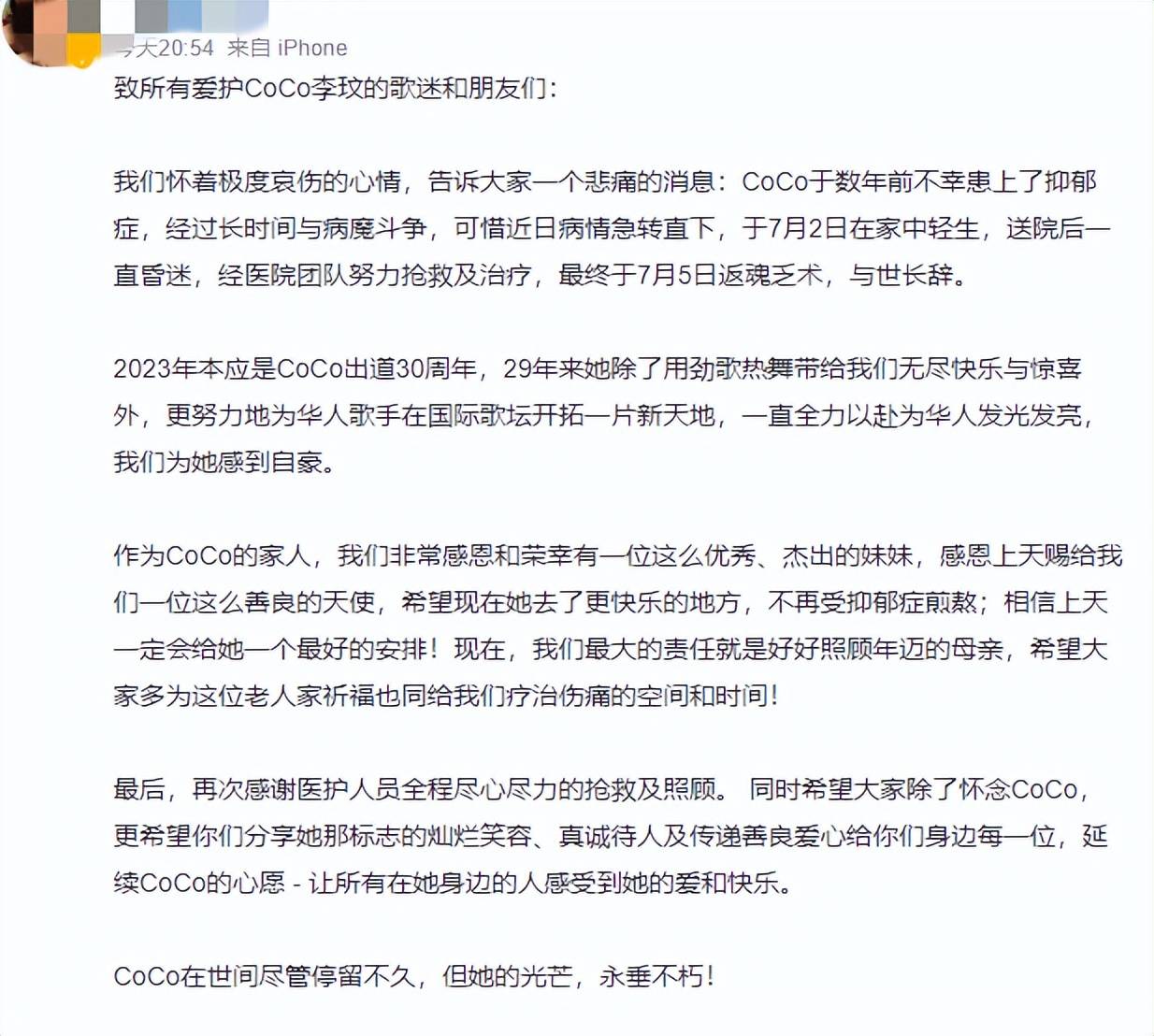 大家没有等来辟谣,随着李玟抑郁症等词条的上升,李玟二姐发布了声明。