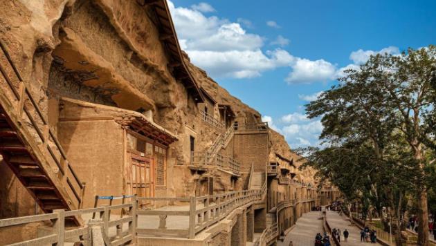 敦煌莫高窟作为中国石窟艺术的代表之一,是中国传统文化宝库中的重要组成部分。敦煌莫高窟位于甘肃省酒泉市敦煌市境内,距离敦煌市约25公里。敦煌莫高窟始建于366年,历经十六个王朝的兴衰、建设与修复,至今已有1600多年的历史。这里收藏了丰富的佛教艺术遗产,其中包括壁画、雕塑、文物等,总面积超过4万平方米,涉及多个洞窟和岩龛。