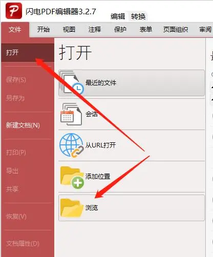 第一步、双击打开软件,选择“打开”-“浏览”,打开需要PDF文档。