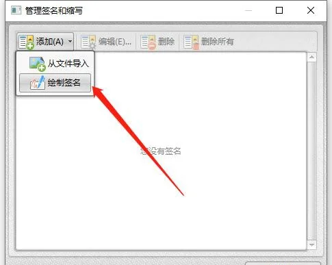 第三步、然后,在以下页面中,选择“添加”-“绘制签名”或者“从文件导入”。