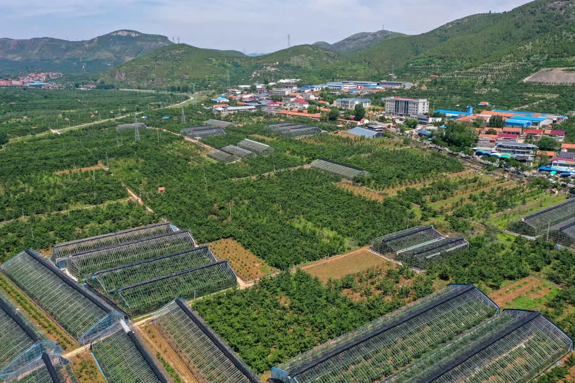 燕崖镇果农种植的樱桃(5月31日摄,无人机照片)。新华社记者 朱峥 摄