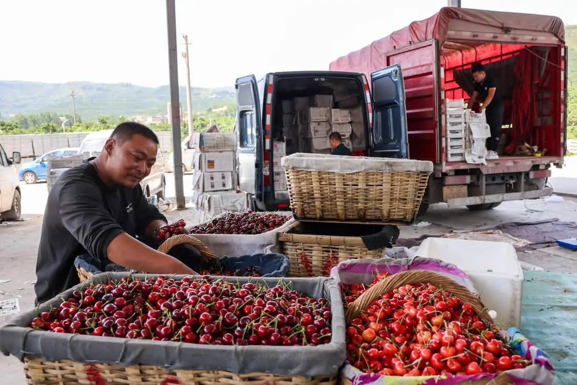 5月31日,果农在燕崖镇樱桃交易市场内交易。新华社记者 朱峥 摄