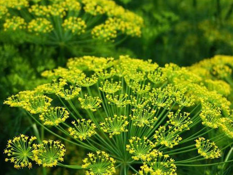9、莳萝:多年或一年生草本,古称洋茴香,叶片鲜绿色,呈羽毛状,味道辛香甘甜,多用作食油调味。