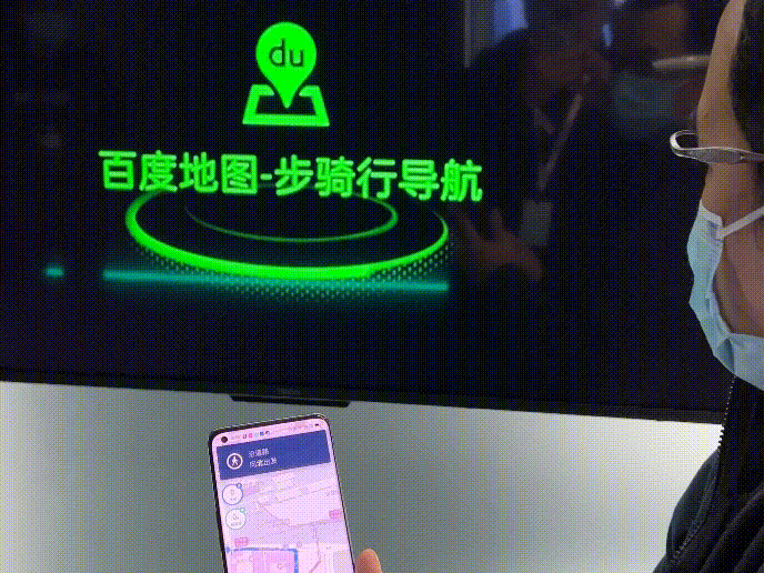 首先体验的是导航功能,极果君打开百度导航,定位后只需片刻便开始导航。值得注意的是,随着头部的摇动,地图方向三角标也在跟随变化。