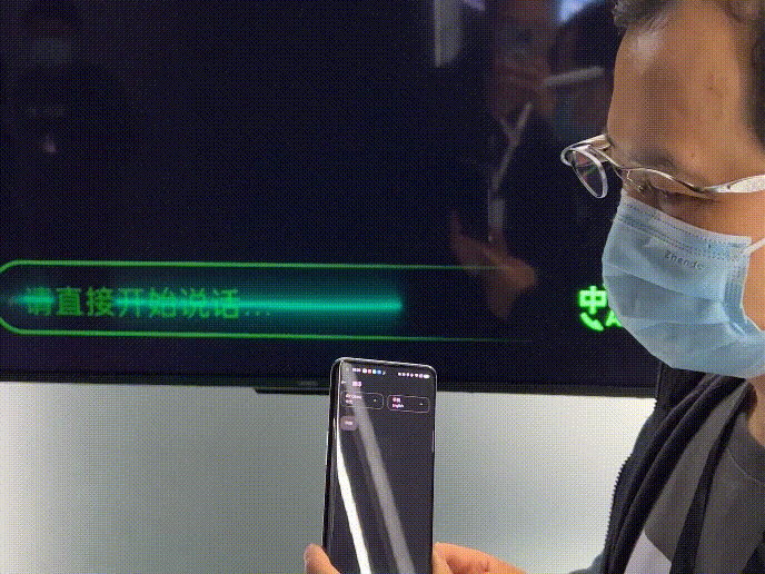 然后体验的是翻译功能,在说出「欢迎来到OPPO2021科技大会」之后,屏幕上直接显示出了英文内容,几乎没有延迟,真是方便实用不卡顿!