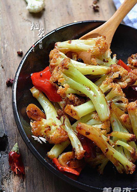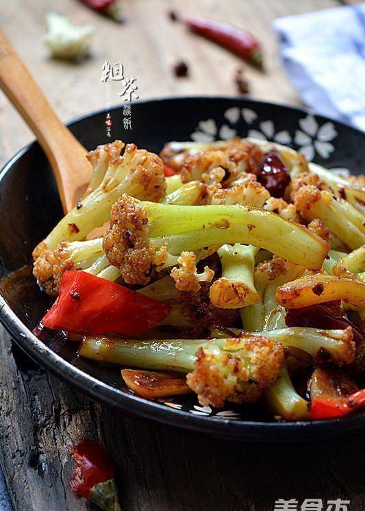 平时做花菜通常都会放点肉一起烹饪,这次没加肉,素炒味道也不错,尤其加入了自制的豆豉香辣酱,特别提味,干香又入味,是一道不错的下饭菜。