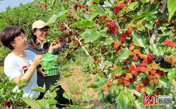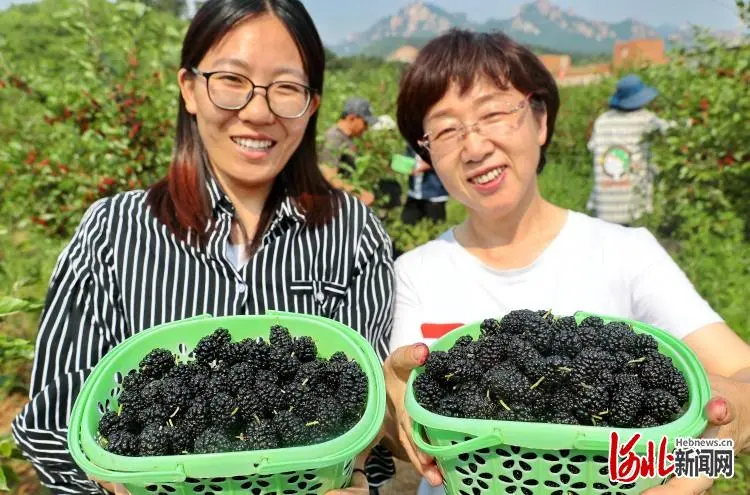2021年6月8日,游客在秦皇岛市海港区石门寨镇柳观峪村采摘桑葚。近年来,河北省秦皇岛市海港区石门寨镇将农业产业和乡村旅游融合发展,结合实际情况优化农业种植结构,着力打造旅游观光采摘园,推进生态观光农业和乡村旅游融合发展,拓宽农民增收途径,助力乡村振兴。通讯员曹建雄摄影报道
