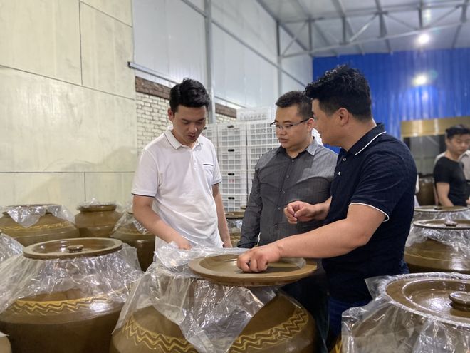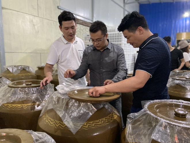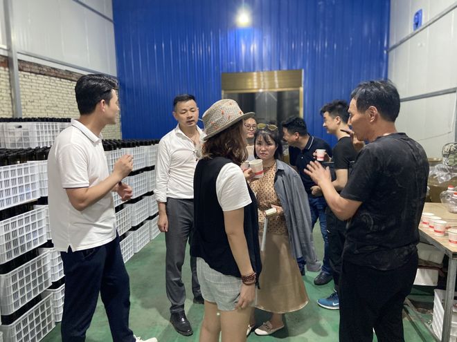 总经理郭科介绍了骆国紫酒庄今年的酿酒情况,及酿造车间处理设备及各种酿造工艺,使考察团对骆国紫有了更深入的了解。考察团都沉浸在桑葚酒的香气里,感受桑葚酒的独特魅力。在放置近千口大缸的酒窖里,考察团品尝了骆国紫高端原浆桑葚酒。总经理郭科为大家讲述了酿酒的整个过程,从最初的酒庄的位置规划——自己栽培种植千亩桑葚园——独特的酿酒工厂和技术,考察团认真倾听并不断拍照合影留念。