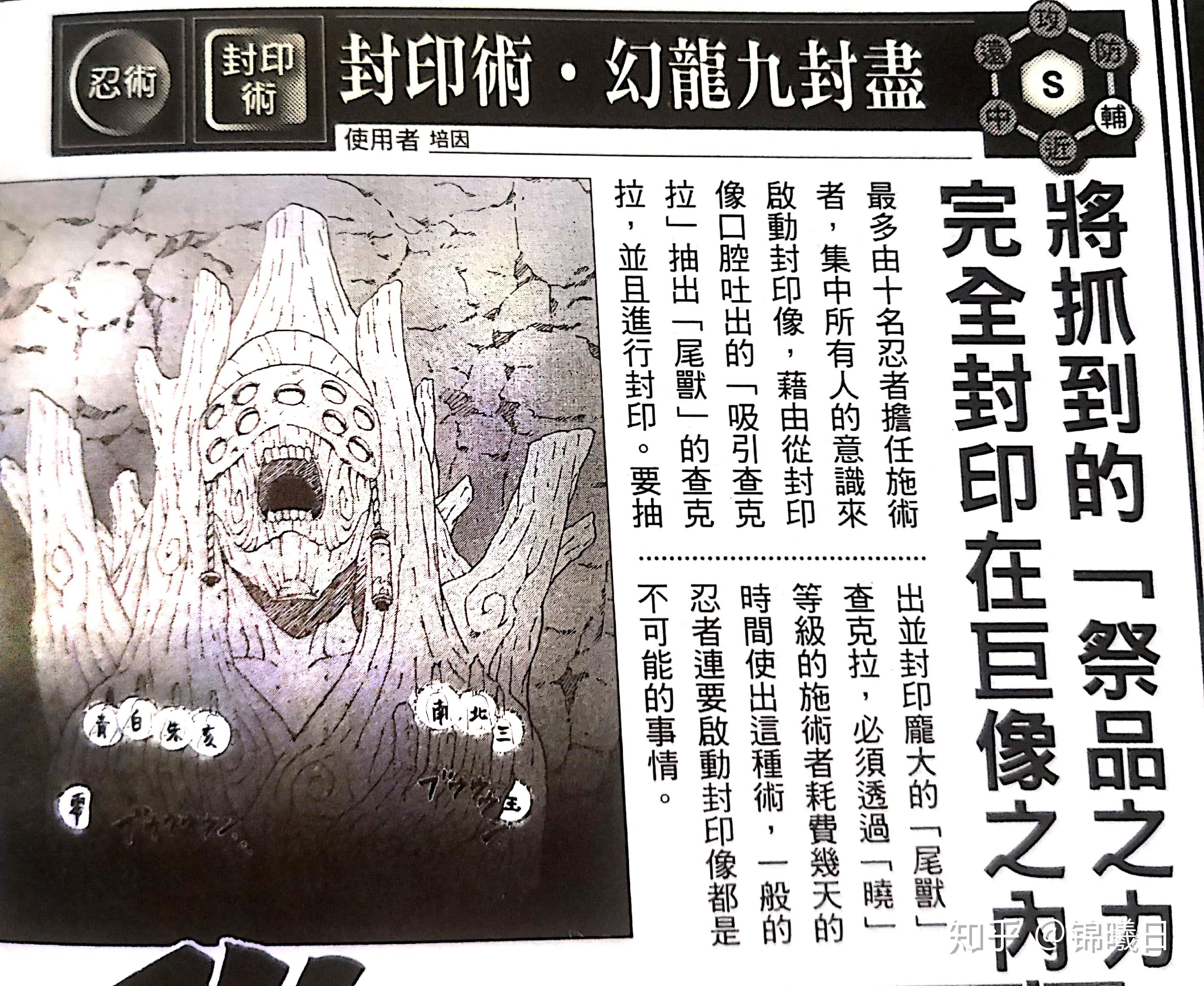 而封印术.幻龙九封尽的介绍中则是提到了“集结最强的十名忍者作为术者”,事实上这个字眼在日文原版与东立台版中都是不存在的,所以多少倒还有点“夹带私货”的理解在里面?所以这点也需要粉丝们理性看待。