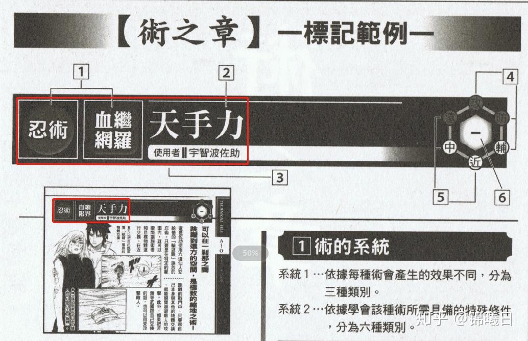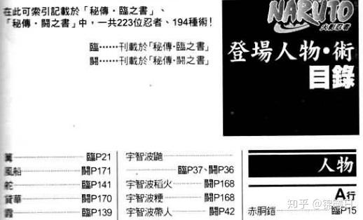 在漫画第12话出现在卡卡西叙述中的龙套忍者在《临之书》忍之章的详细名单里也可以找到这个人的身影,甚至标注了出场页数除了龙套角色也有内容的忍之章之外,《临之书》中也将术的等级概念、术的类别、术的范围等概念做了第一次极为详细的阐述(毕竟是第一本公式书),这也为补充《火影》里术的概念奠定了相当的基础。