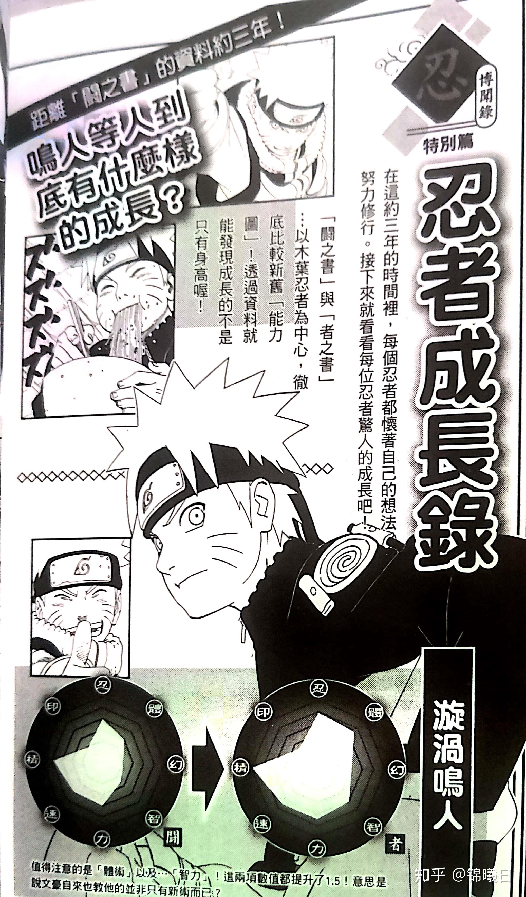 《临之书》(港版):漩涡鸣人的综合能力、潜在能力与运势当然“少年化”之下也有其“商业化”的一面,自《临之书》开始后的几本公式书都带有由读者投票选出的最帅镜头、最帅扉页、忍术人气排行榜等等内容。