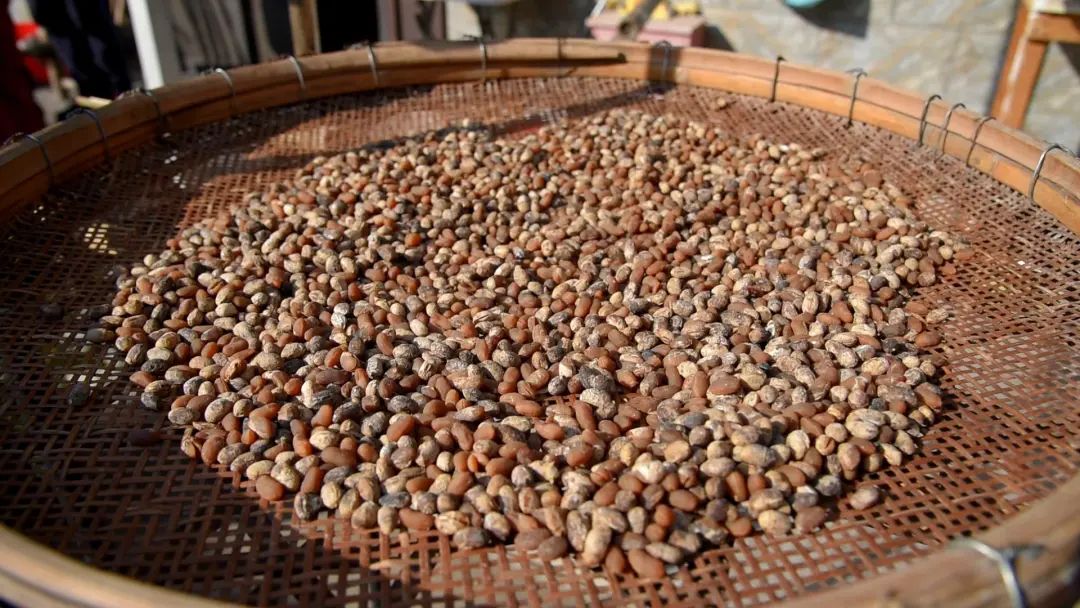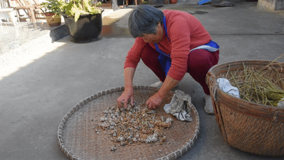 一颗颗乌黑发亮的豆豉铺于簸箕中